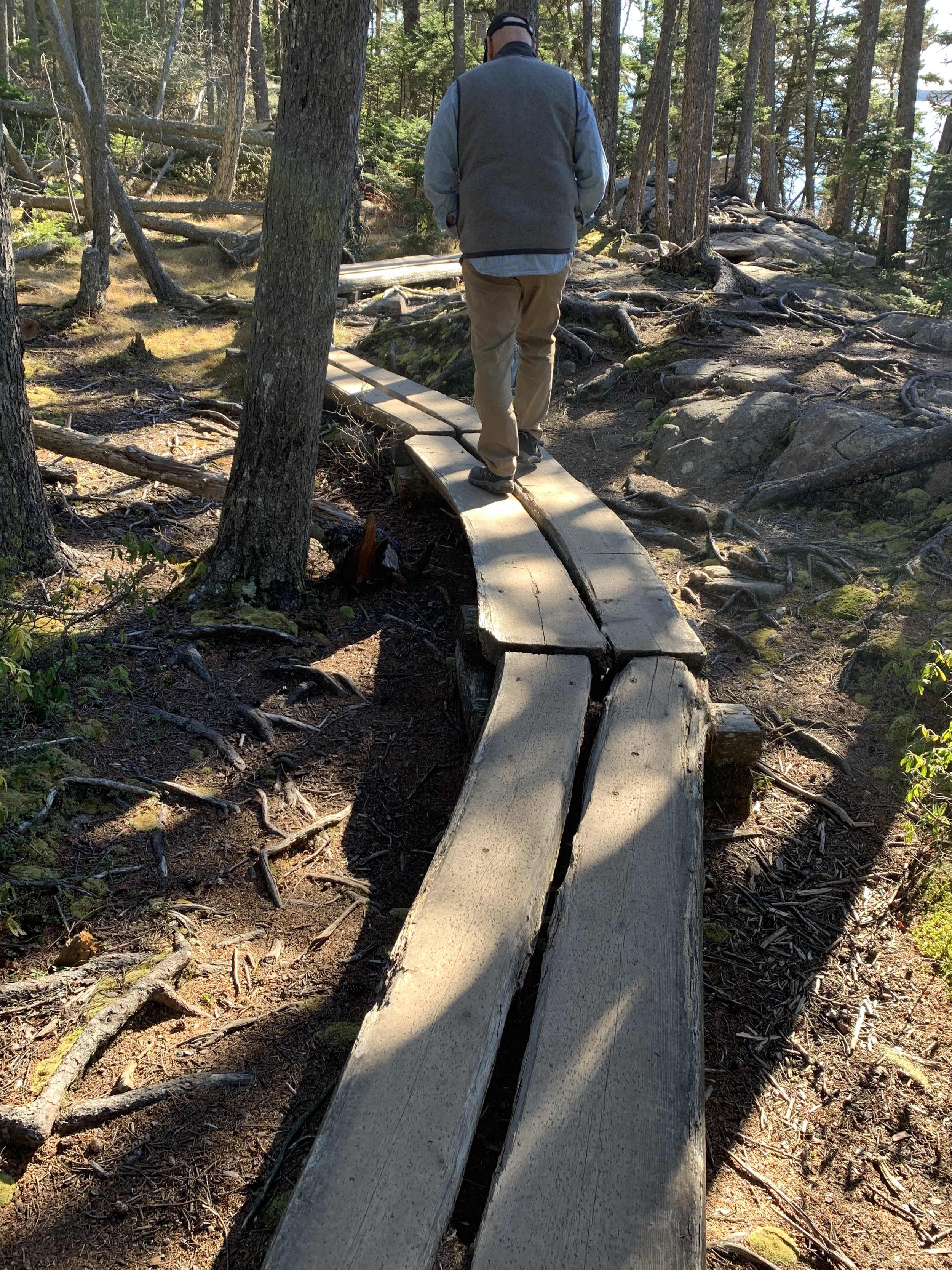 On day two, we drove to the west side of the island and hiked the Ship Harbor trail and visited the historic Bass Harbor Lighthouse. The Ship Harbor trail was so perfect. The trail went along a natural harbor which is way too small for a modern ship or even a large boat. We climbed rock cliffs above the water, walked on rock beaches at the water’s edge and then the trail went into the forest where some parts were elevated on wooden logs to protect the marsh. The weather was chilly, but so sunny.