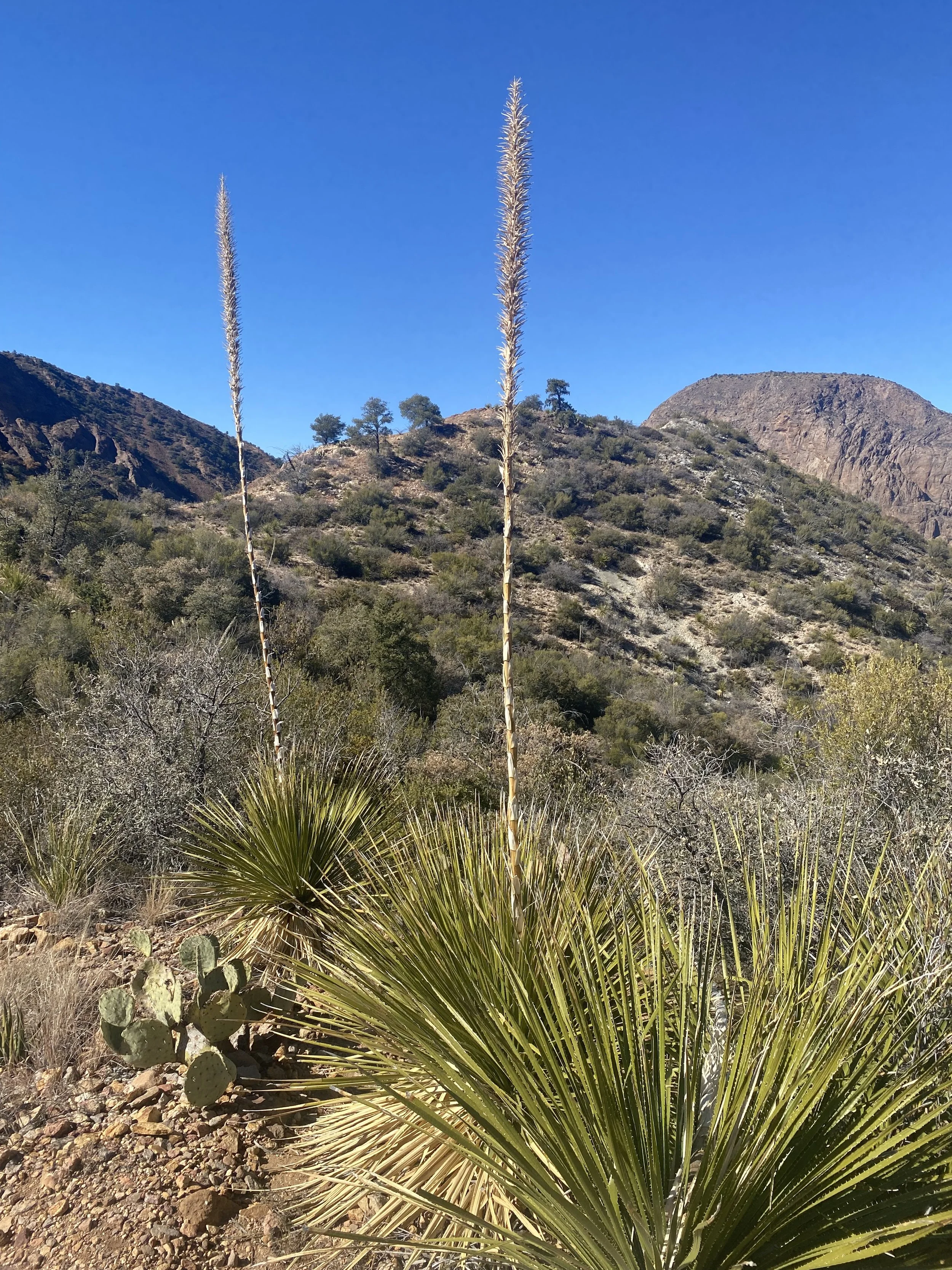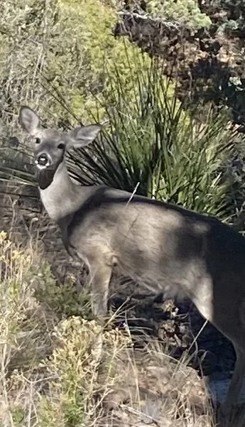 Throughout Big Bend, we saw so many varieties of plants…most requiring little water. However, we hiked into a desert oasis with a live running spring and even found a palm tree. The animals were not quite so abundant because of the lack of water, but we got a few pics. Our last morning drive out of the park we saw a small herd of deer, three young stags that were not together, and a pack of coyotes. All were either on or close to the road. We didn’t get any pics, but we nearly ran them over.