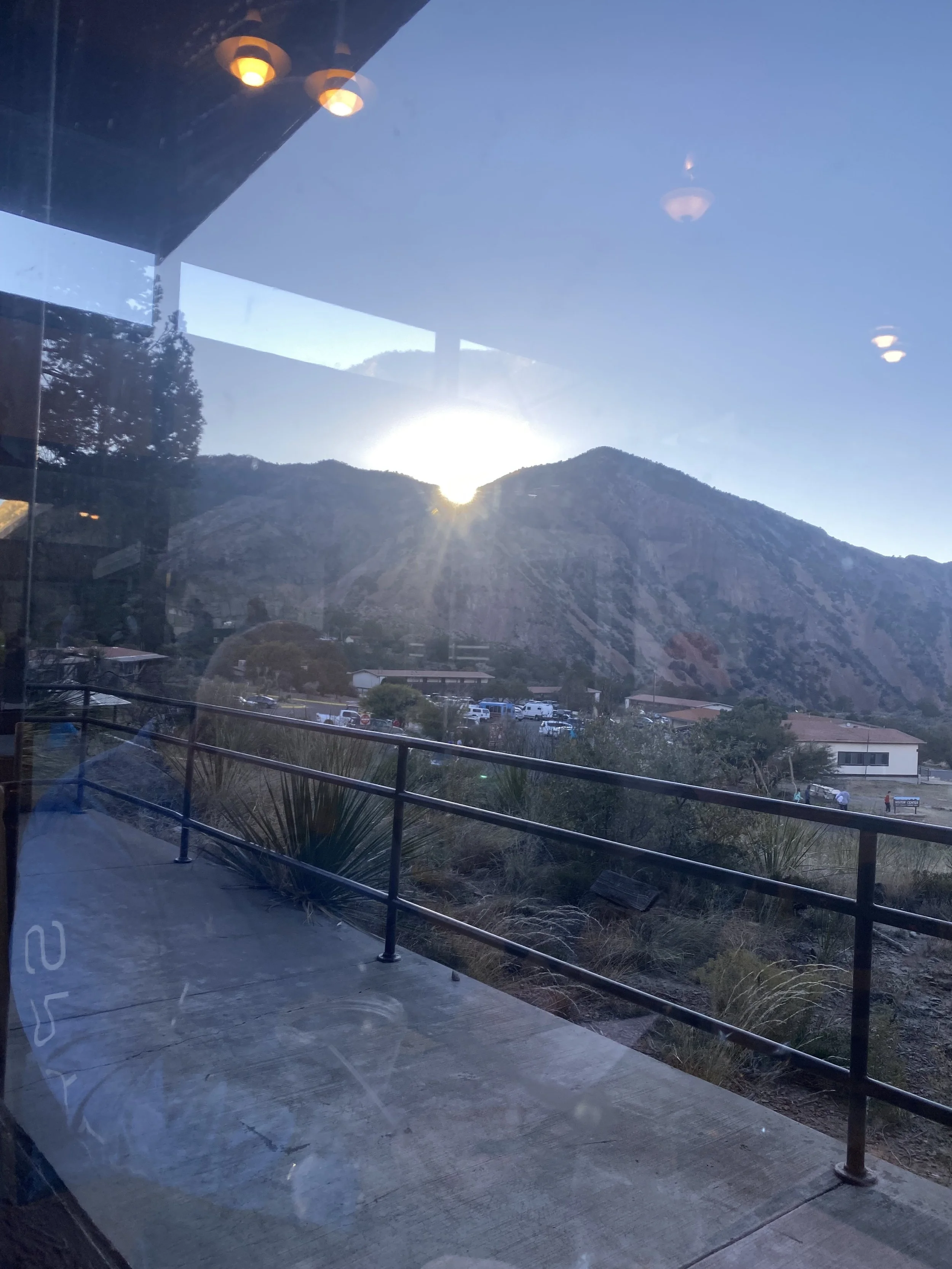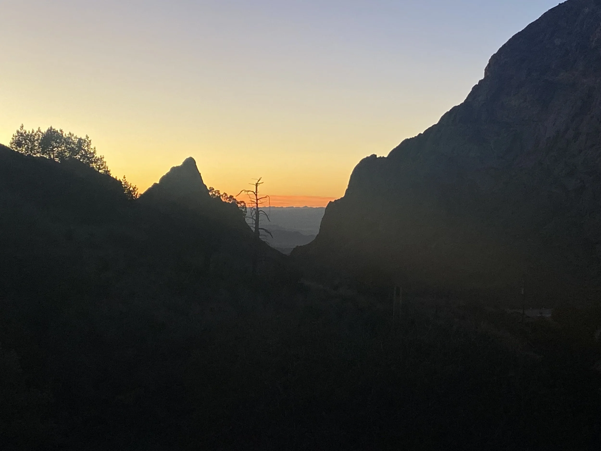 We stayed two nights in Alpine which meant that we drove about two hours into the national park each morning…and back to Alpine one of those nights. The third night, we were able to get a room at the Chisos Mountain Lodge which is inside the park and saved us some driving. The good thing about driving into the park early in the morning is that we saw some amazing West Texas sunrises. Below shows the sun’s progression on January 13, 2024.