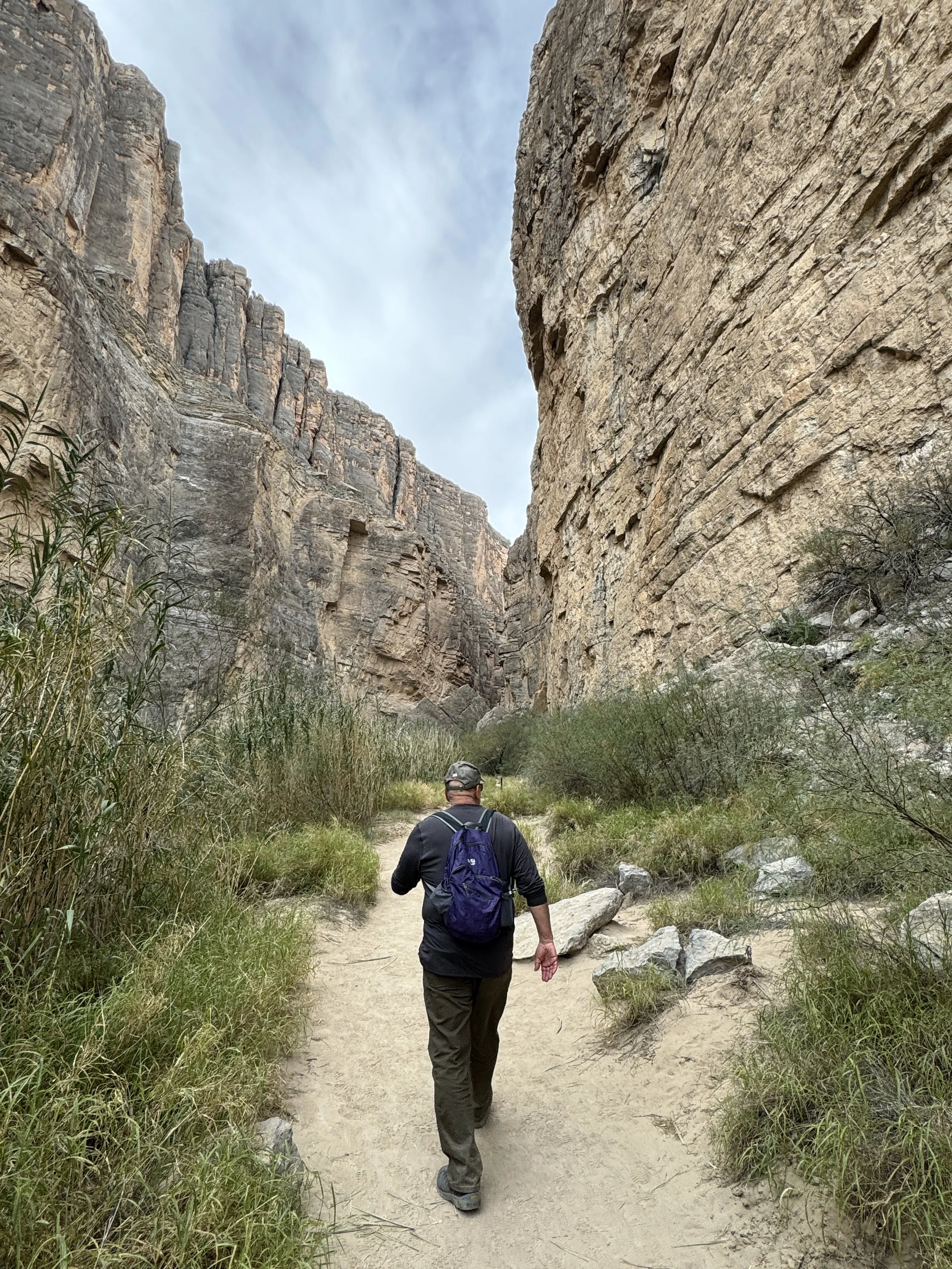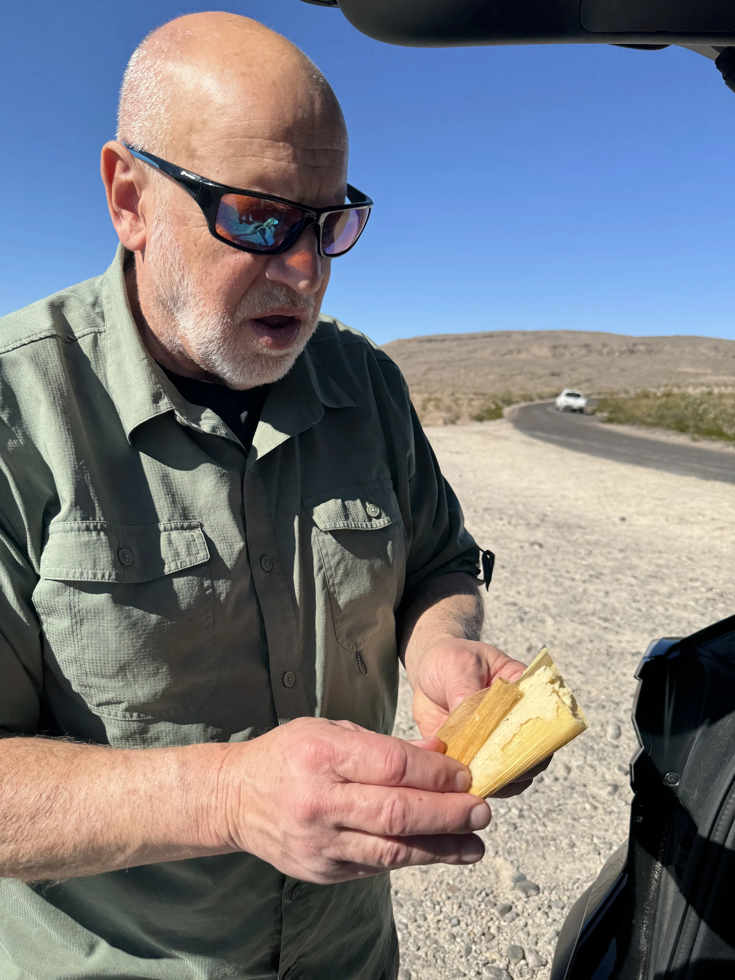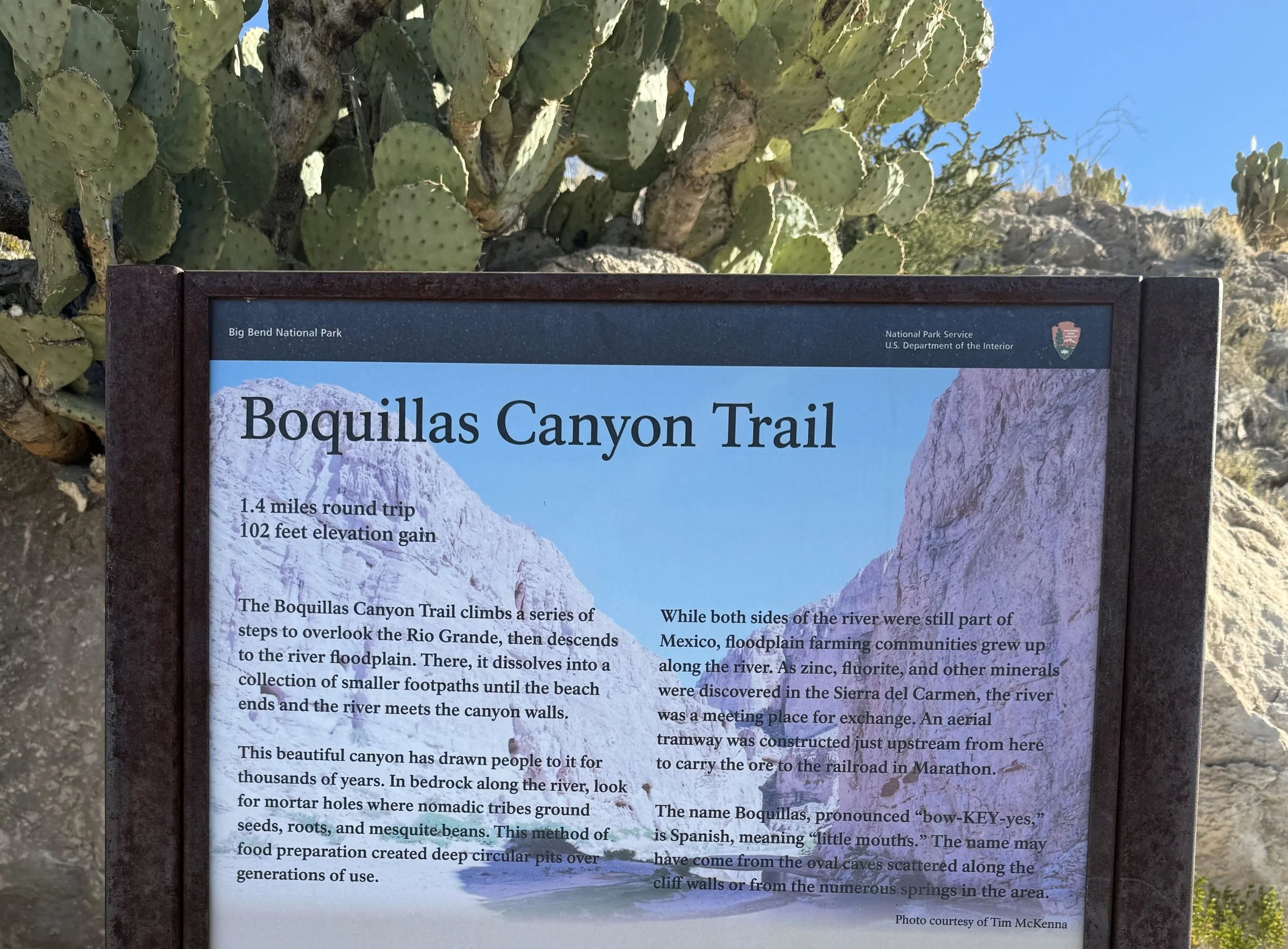 This part of the park is furthest southeast. There is a small Mexican village, Boquillas, across the river that some people hike to, but we passed. Instead, we hiked the 1.5 mile Boquillas Canyon Trail. Unlike Santa Elena Canyon, this hike was down at the water’s edge. The most interesting things about this hike were the little “shops” along the hike set up by the Boquillas residents selling crafts…and tamales. The shops were generally unattended honor system ($10), so they left a note and a lockbox for payment. We were previously told by a park ranger that if we saw a man on horseback selling tamales along the trail, to buy some because they were very good. We did see that man on horseback, so we bought six tamales and four strawberry empanadas. Against our better judgement, we had this “street” food for lunch and it hit the spot after the hike.