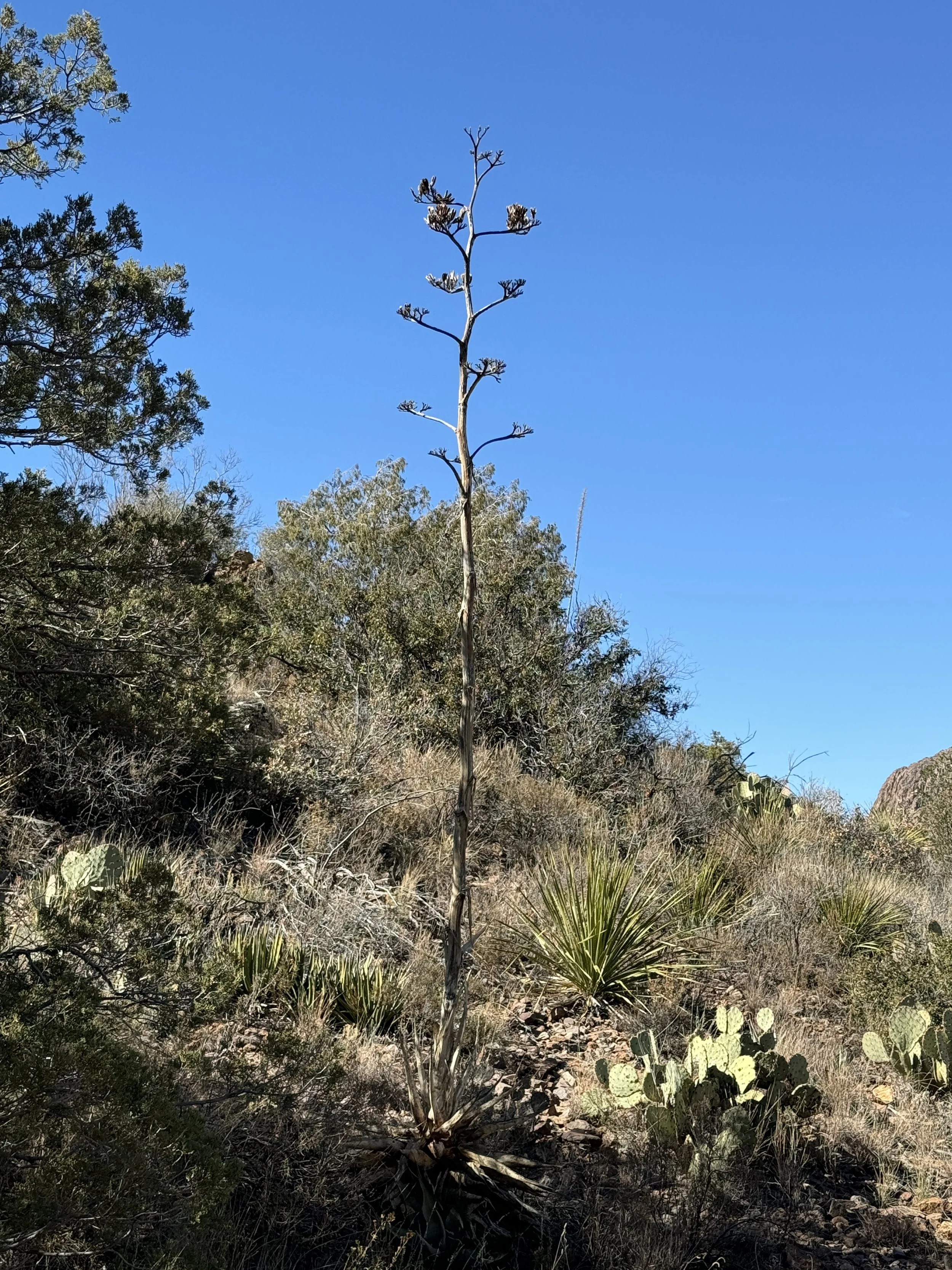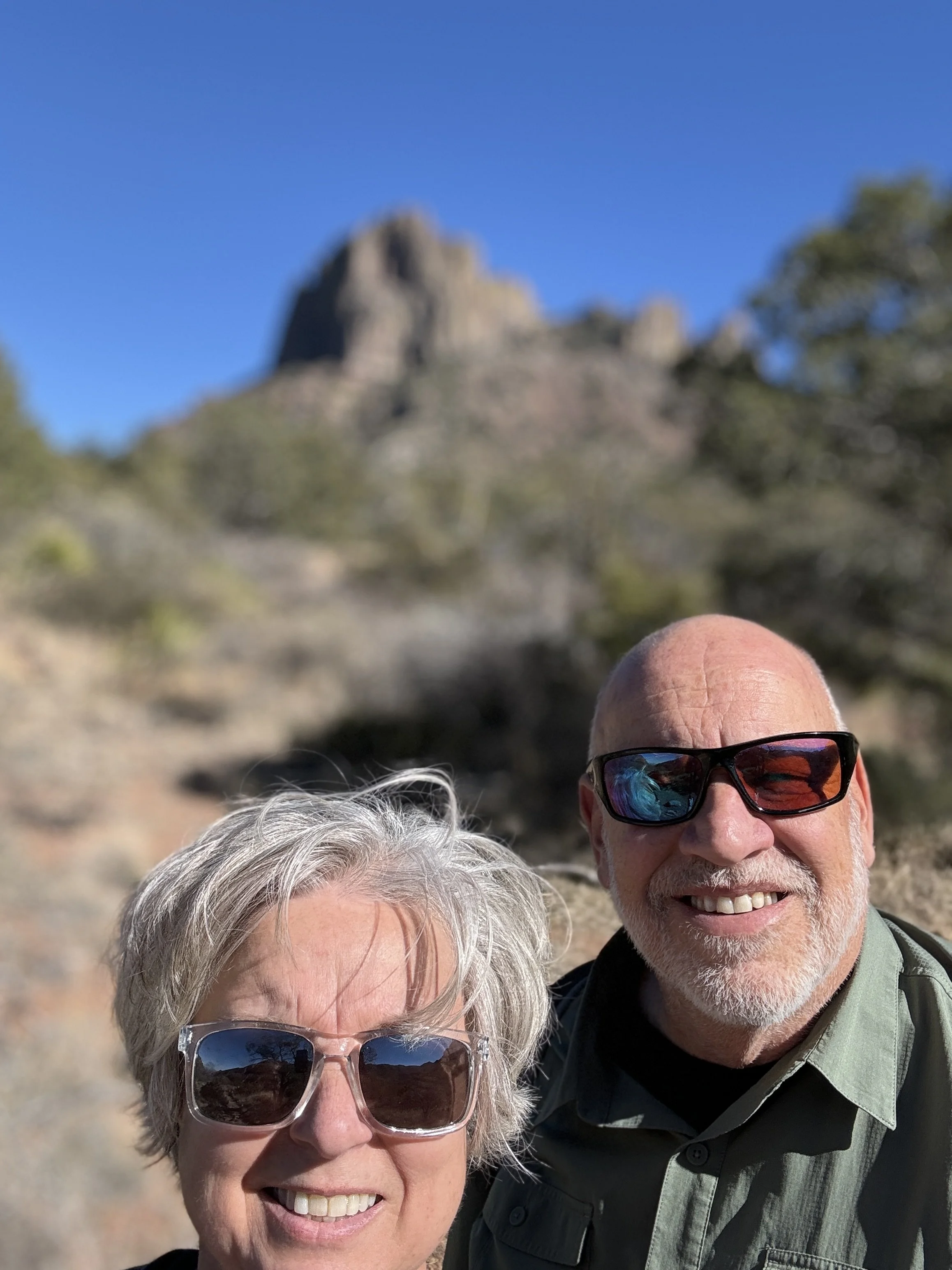 We hiked the two mile Chisos Basin Loop Trail which was more challenging than expected because it started at an altitude of 5000 and climbed another 1000. As the photos show, we always had Casa Grande in our view.