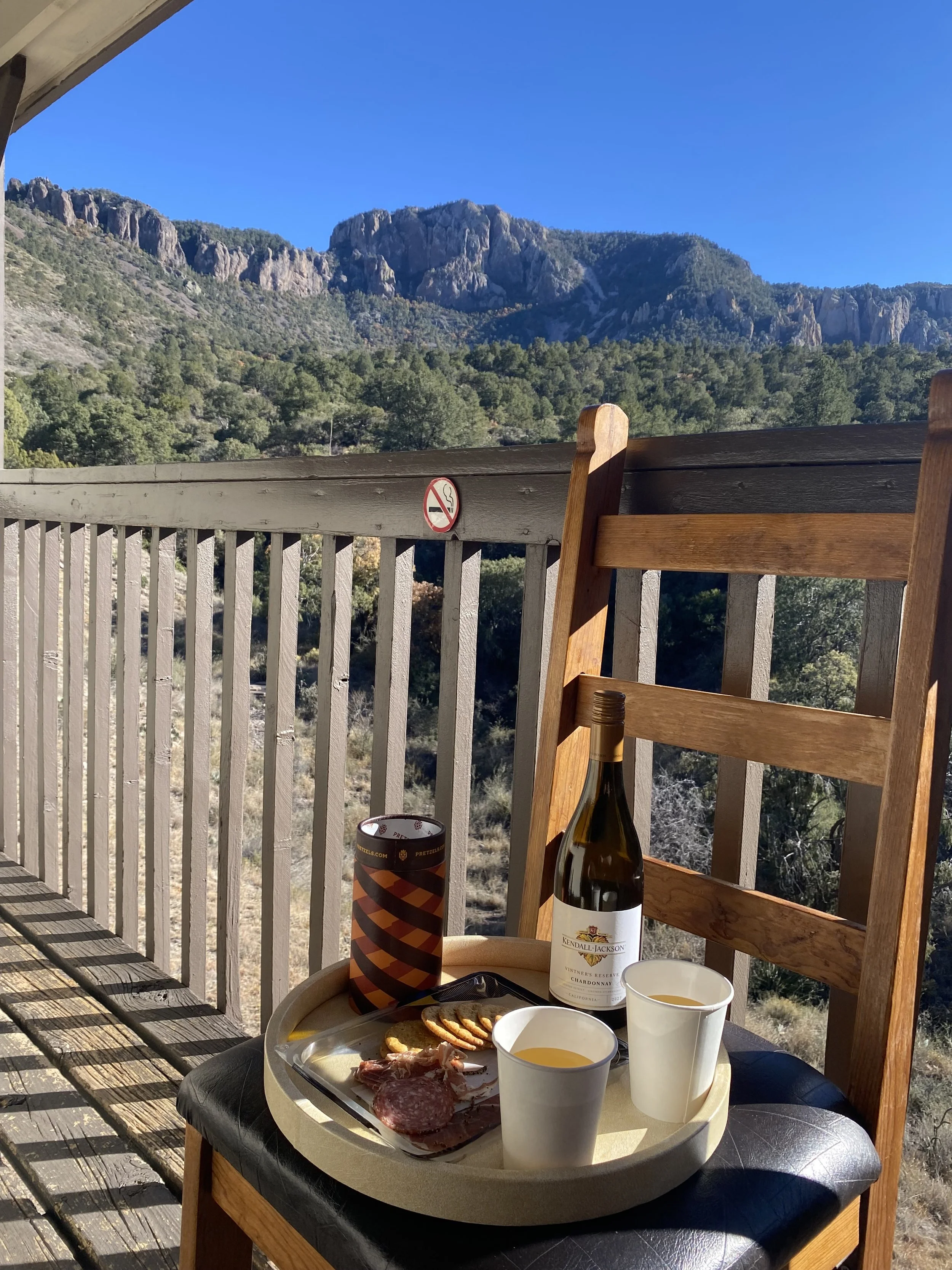 The view out our balcony at Chisos Lodge. Happy hour (with a makeshift table) after a long day of hiking followed by a beautiful moonrise.