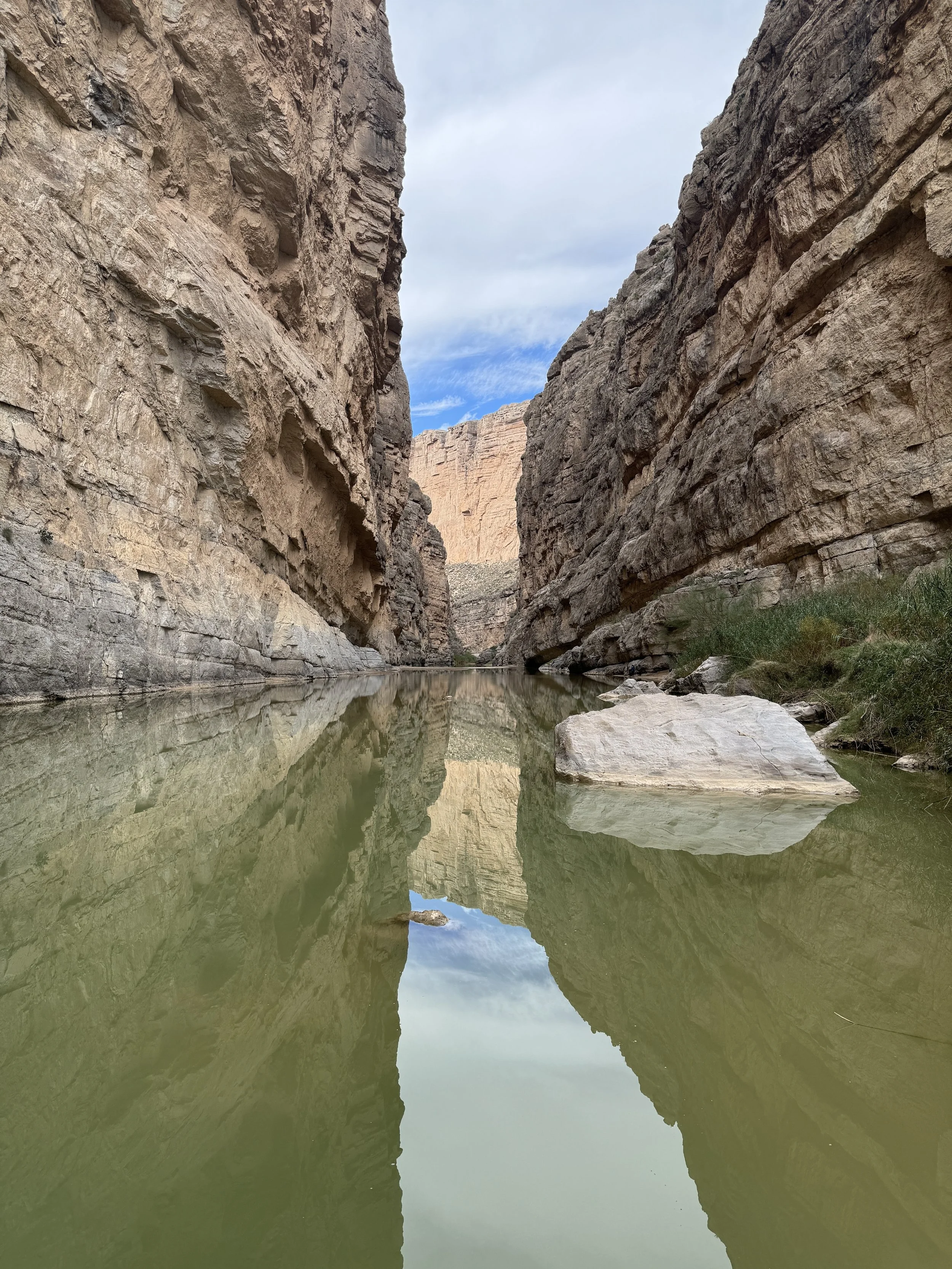 In the Westside region of the park, the Rio Grande is bordered by a long and very tall rock cliff creating a natural wall. Toward the southern end of the wall is Santa Elena Canyon. We hiked up and into this canyon for about two miles and saw some beautiful canyon reflections. Below is a short video showing part of our hike.