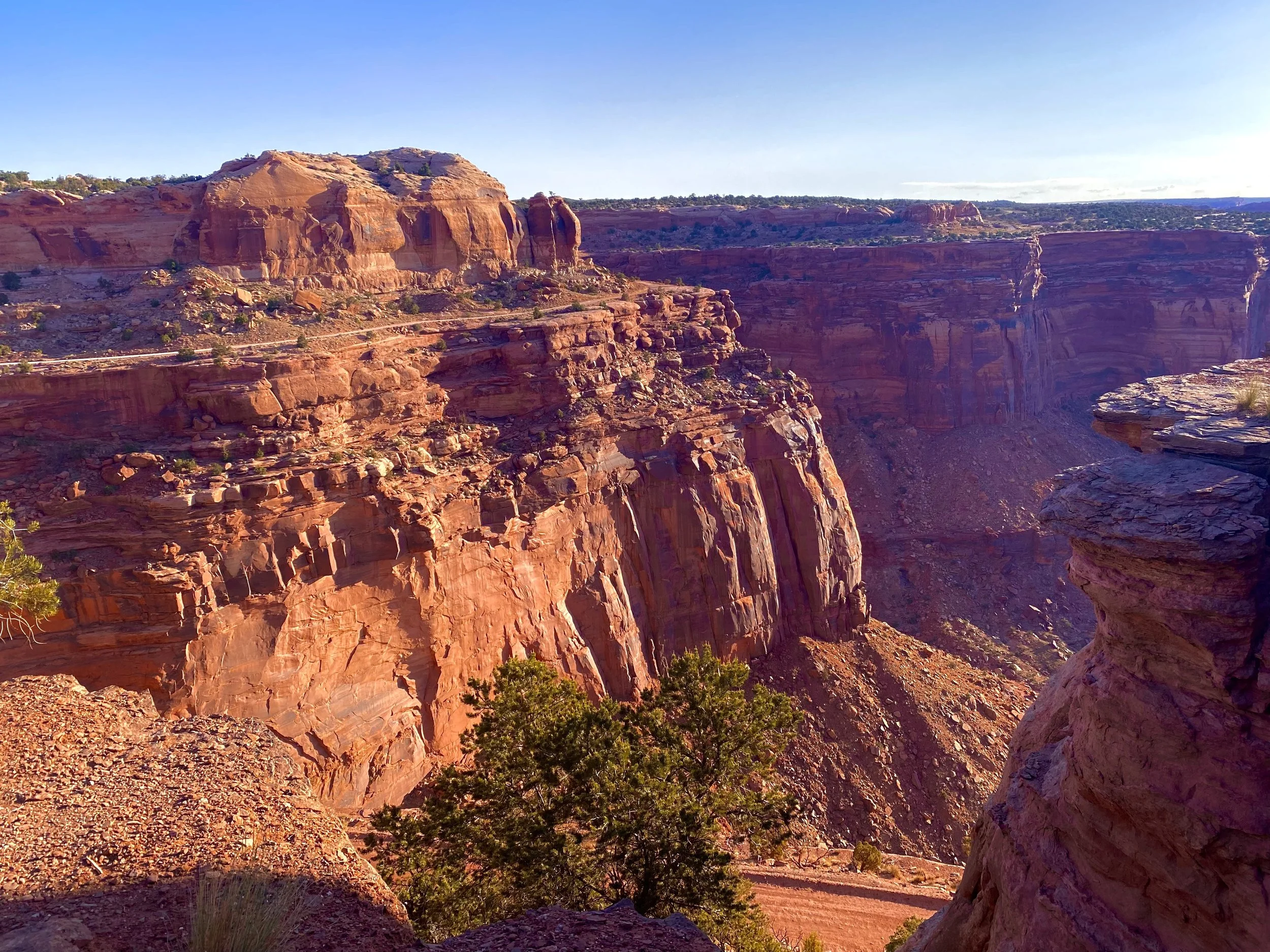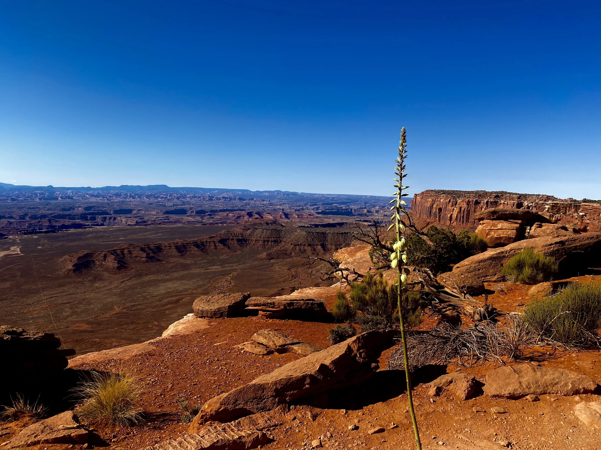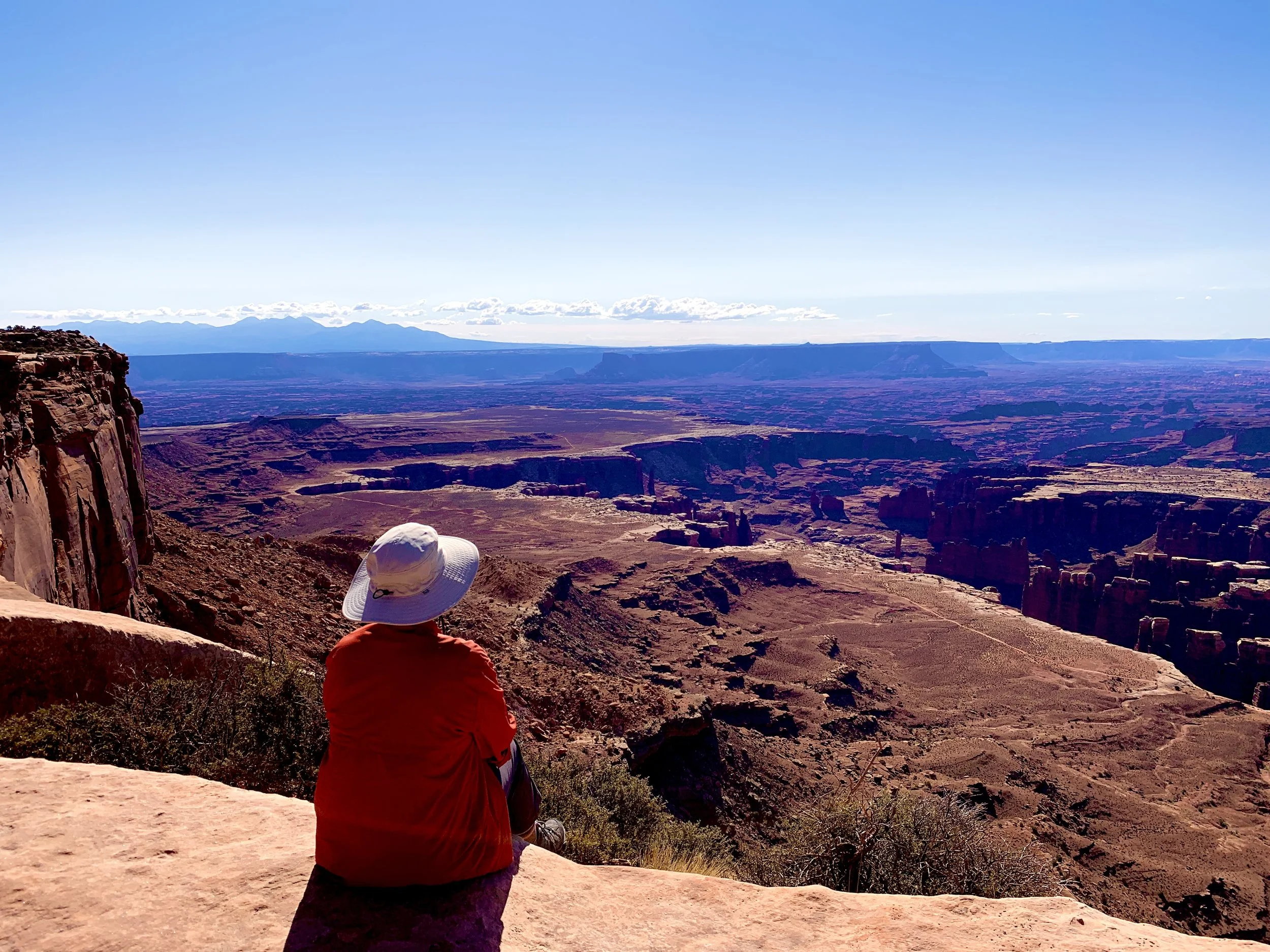 We arrived at the park around 7:15AM. No one was at the gate and the Visitor Center didn’t open until 9:00AM. It was nice. Later in the day the parking lots started filling up and the hikes get more crowded. We timed our visit perfectly. We hiked two longish hikes of 2 miles each: Grand View and Upheaval Dome.
