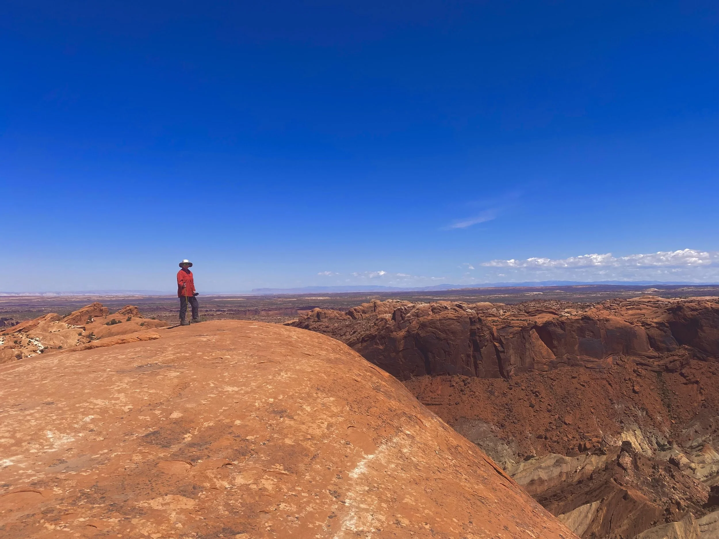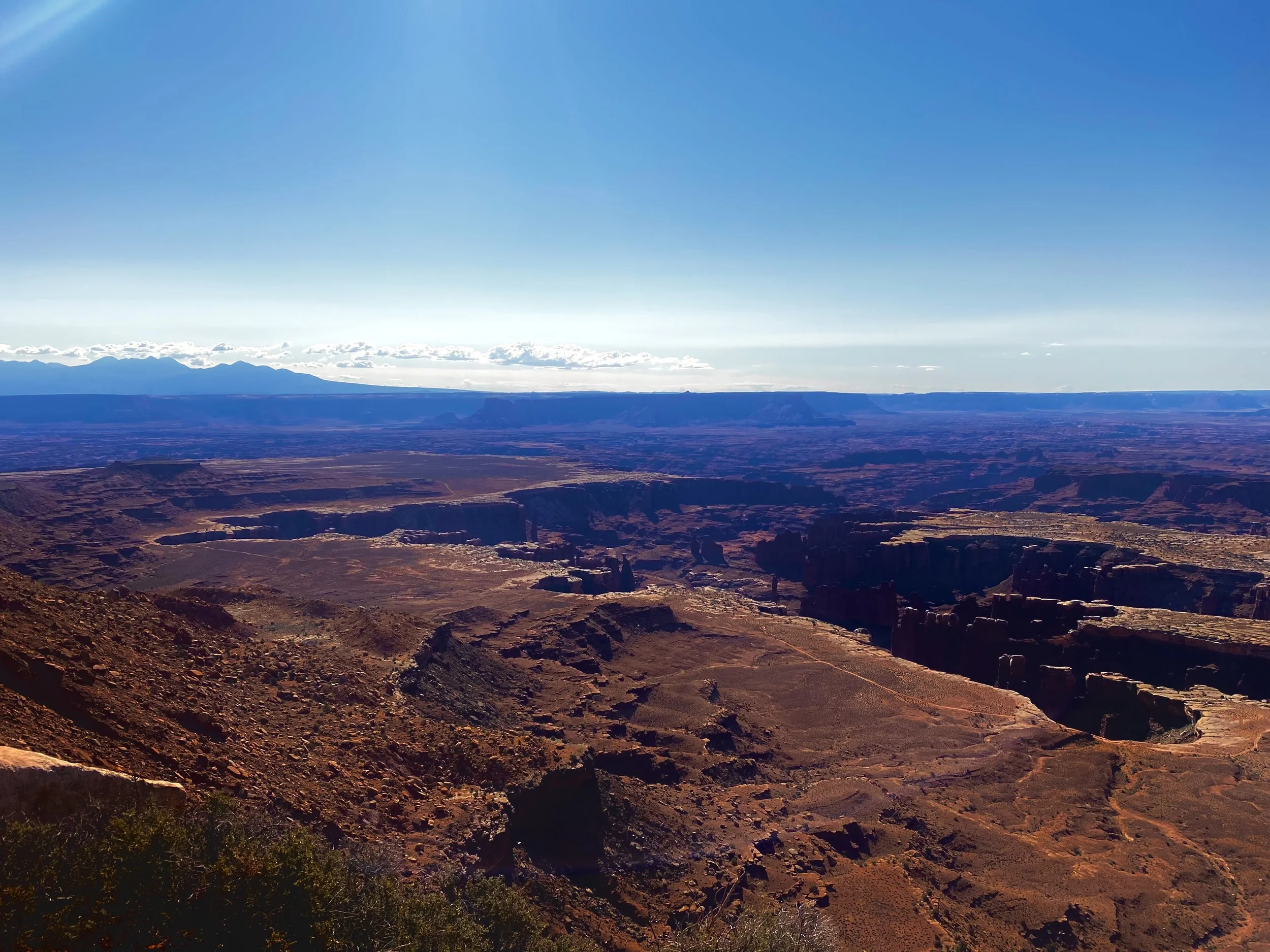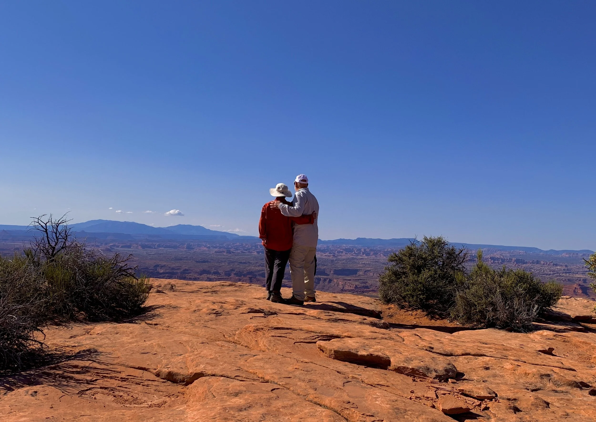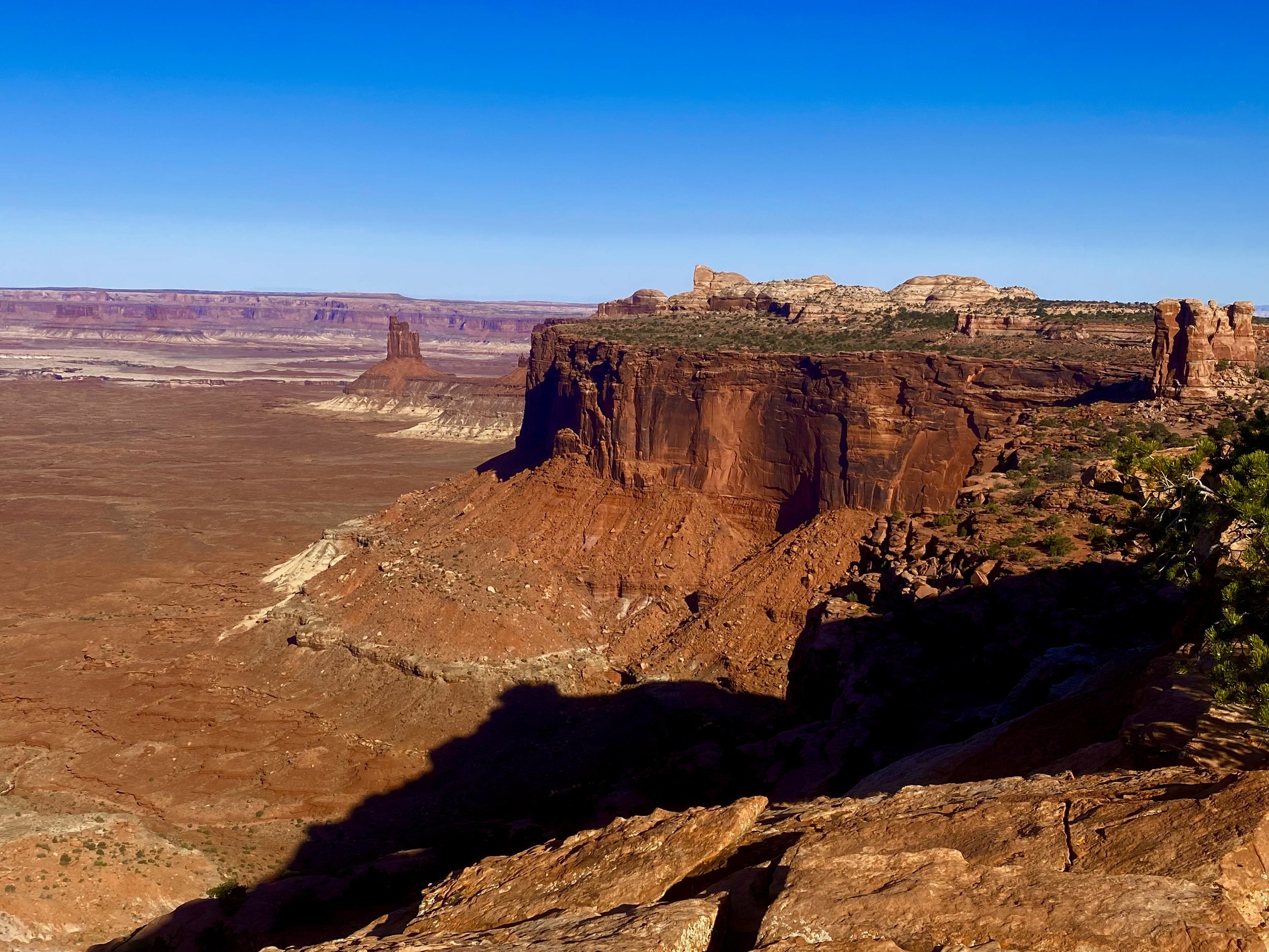 We arrived at the park around 7:15AM. No one was at the gate and the Visitor Center didn’t open until 9:00AM. It was nice. Later in the day the parking lots started filling up and the hikes get more crowded. We timed our visit perfectly. We hiked two longish hikes of 2 miles each: Grand View and Upheaval Dome.