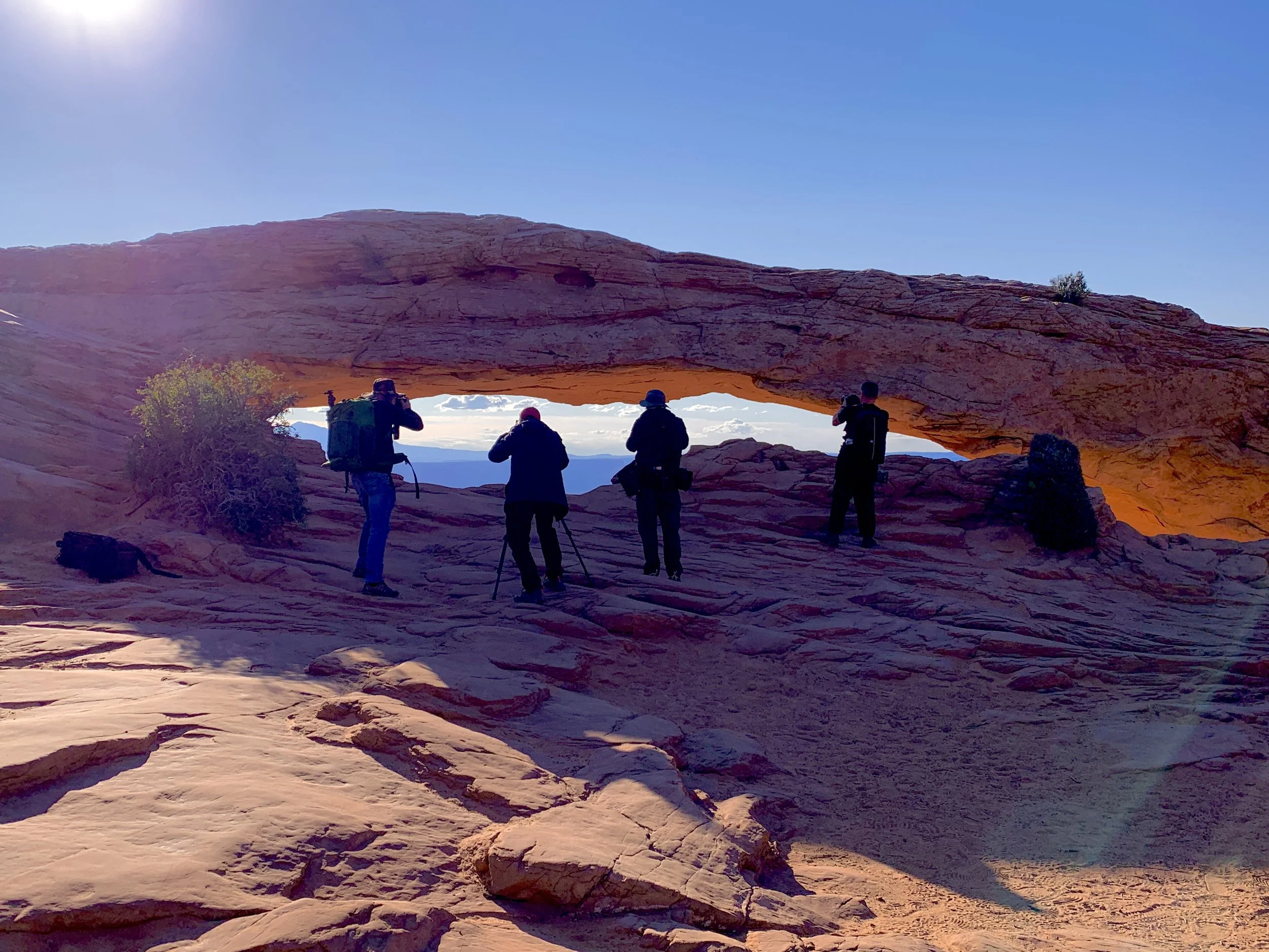 Mesa Arch is a bucket list item for professional photographers. At sunrise it is always packed with photographers. These four guys had cameras the price of cars. I told them they could borrow my iPhone, but no takers.