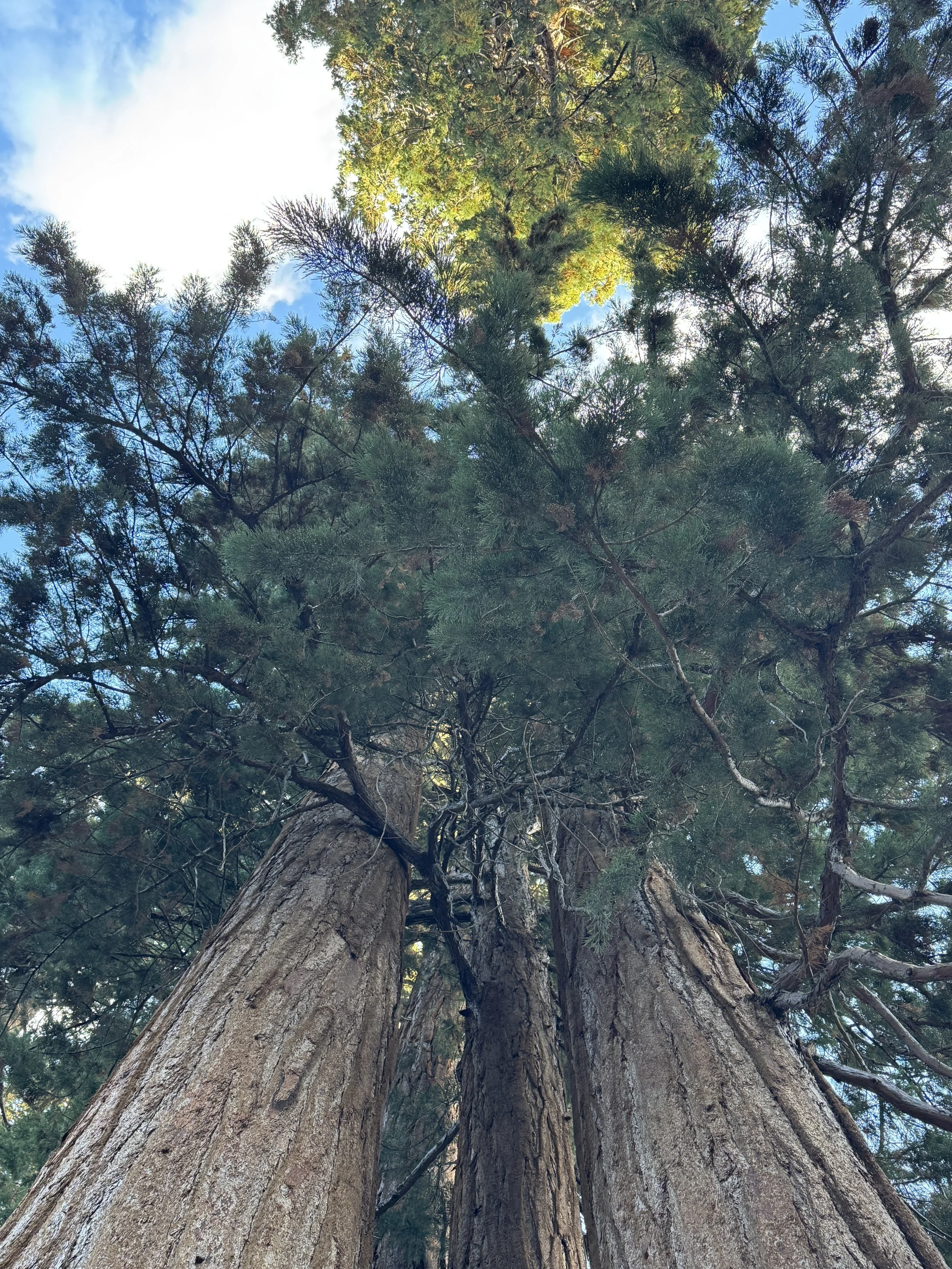 We started our drive from Sequoia NP to Kings Canyon NP very early the morning of Saturday, September 27. Once again, we used the GuideAlong app to narrate our Kings Canyon NP drive. Just before we crossed the “border” between parks, we stumbled onto another grove of giant sequoias, called Lost Grove. The road curved through this lesser known grove and we stopped to walk among the giant trees. We were the first ones there and had the place to ourselves for a while. These particular trees are not as big as “General Sherman”, and they don’t even have names, but it was a quiet, cool and solitary way to stand in awe of these giants that have been growing for thousands of years.