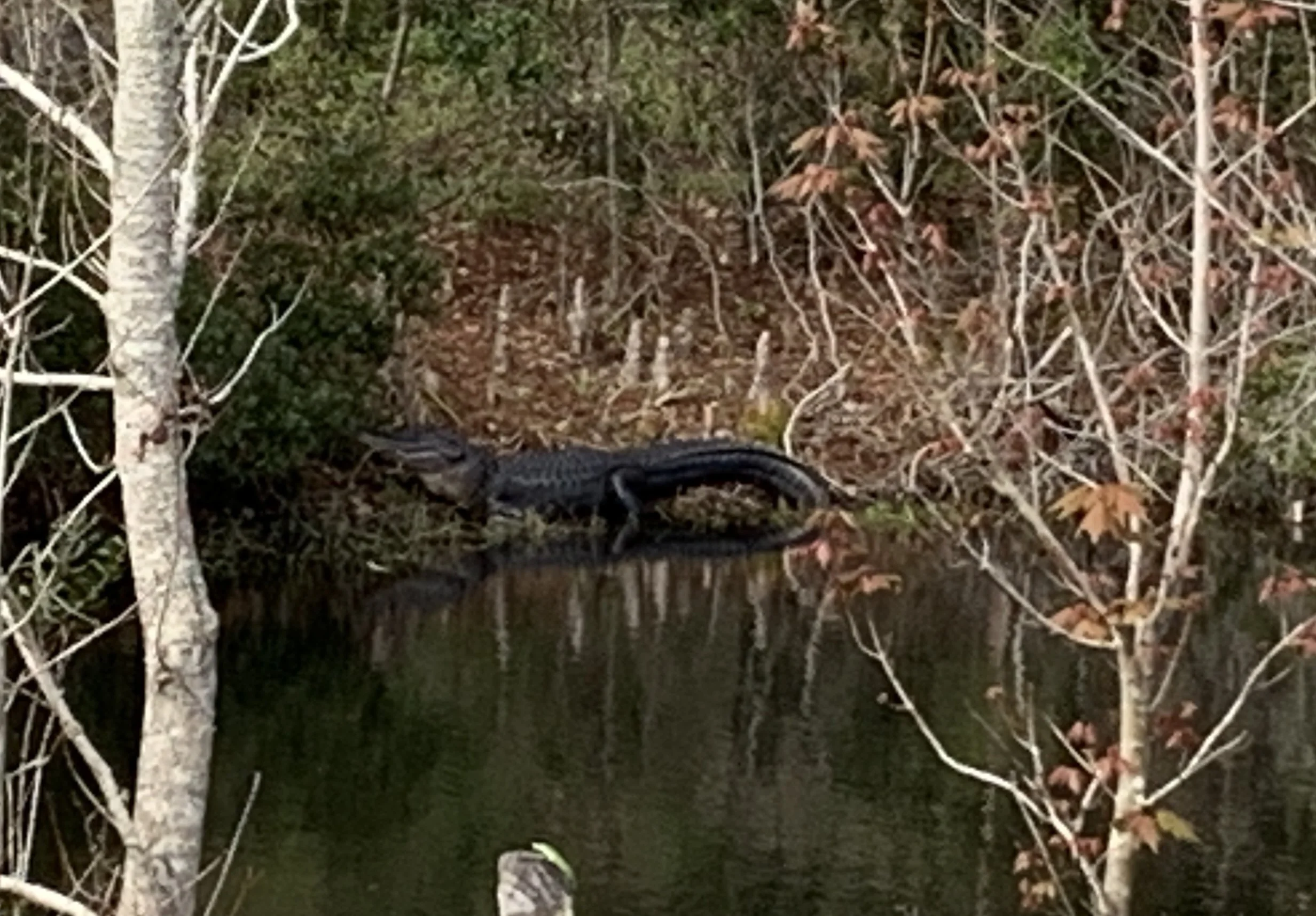 We saw this adult alligator while walking through the Florida Botanic Gardens. He was as still as a very large statue. We could just barely see him slightly move.