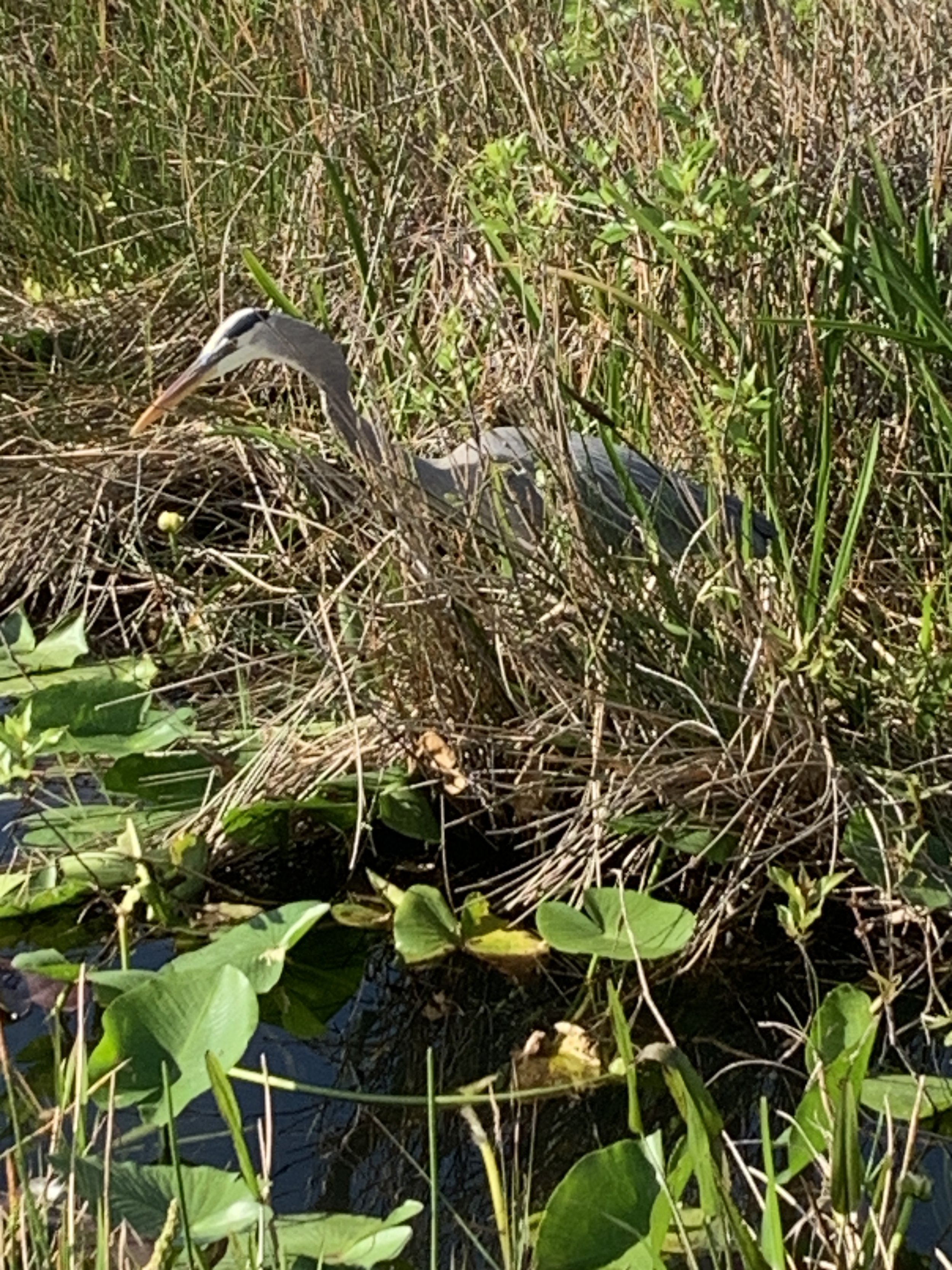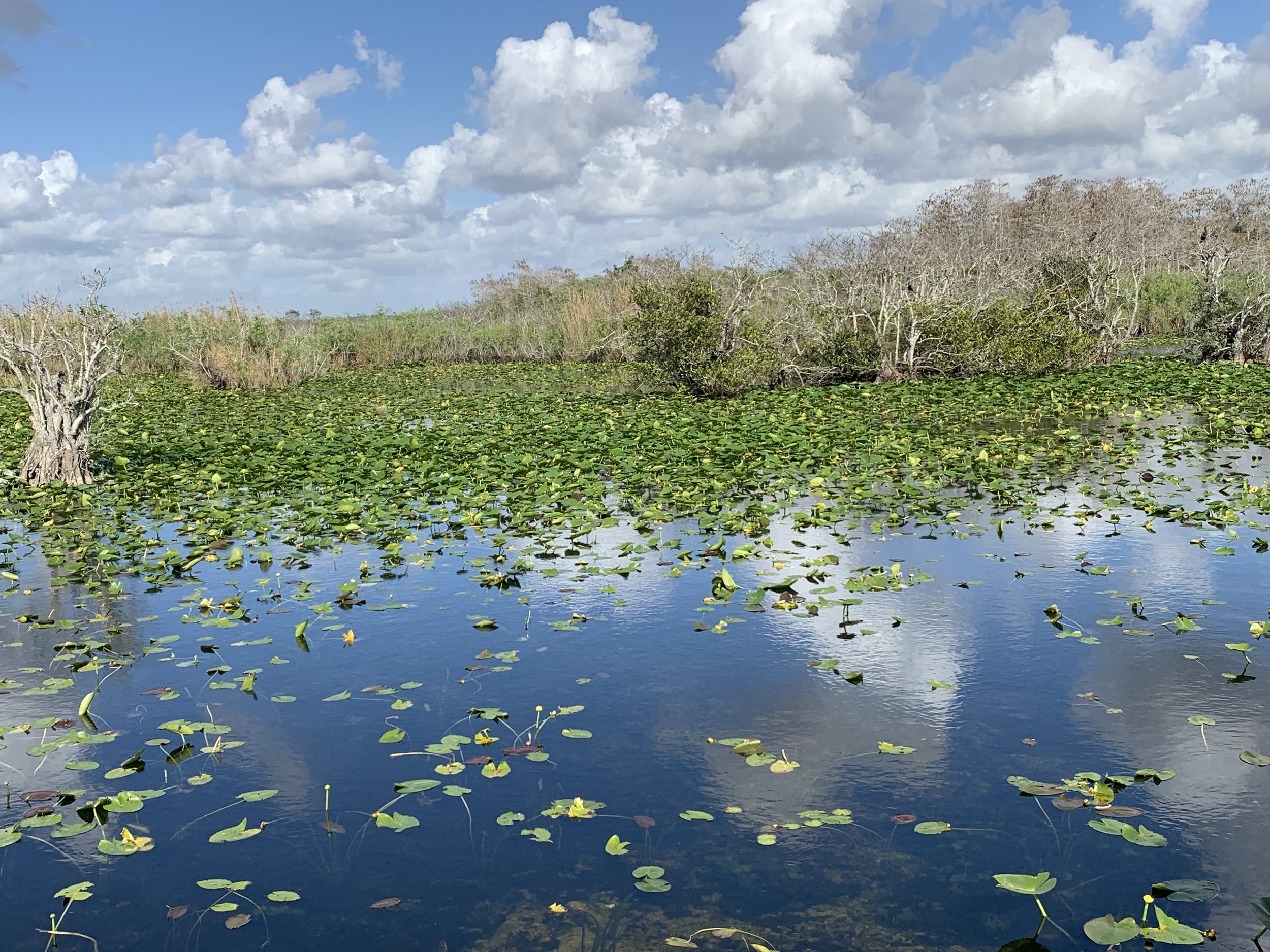 We entered the NP near Homestead at the Ernest F. Coe Visitor Center and started the 76 mile roundtrip scenic drive to the Flamingo Visitor Center at the far south end of the park. We hiked the one mile Mahogany Hammock trail (a hammock is a group of trees) and saw the country’s longest living Mahogany tree. It looked like it was on it last leg with several varieties of parasitic plants growing all over it. The Flamingo area looked like a great place to canoe through the tall grassy brackish waters as the park ends in the Gulf of Mexico. We learned that this part of the the NP does not have alligators, but rather crocodiles because of the salty water. We left the canoeing to others and finished our day with the Anhinga hike near the Royal Palm Visitor Center. We were glad that we saved the best for last. This hike is named after the Anhinga bird and brought us up close to many species of birds, fish, turtles, water lilies, and beautiful scenery. We got some great photos.