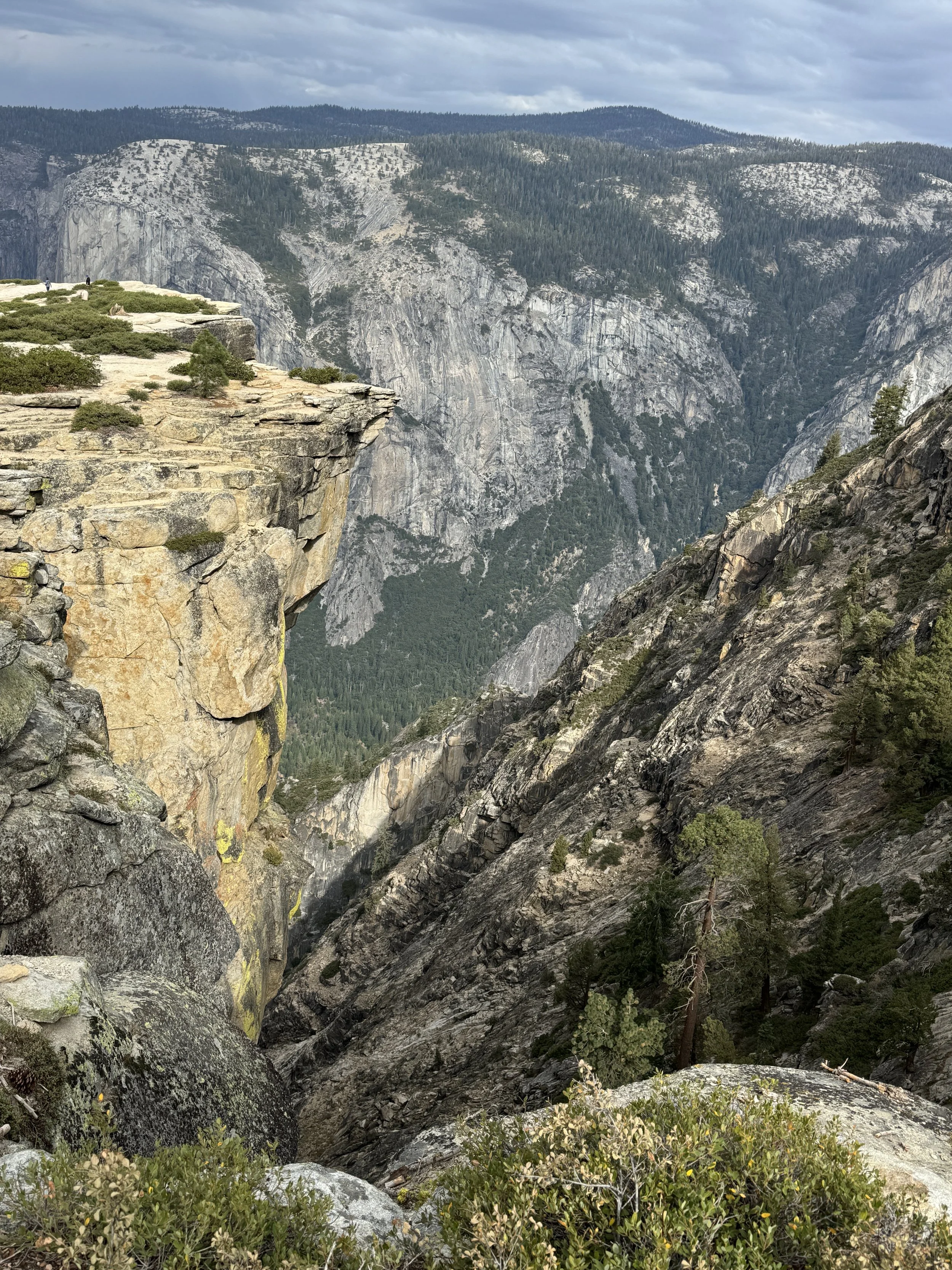 The hike to Taft Point was fairly easy through a beautiful forest. The elevation at the point is around 7500 feet and has some stunning views down to Yosemite Valley where we could see our old friend, El Capitan. Taft Point is another granite dome, but the unique features about this dome are the fissures. Fissures are very scary long cracks in the rock so you have to be careful walking around. They are sometimes wide and always very deep!