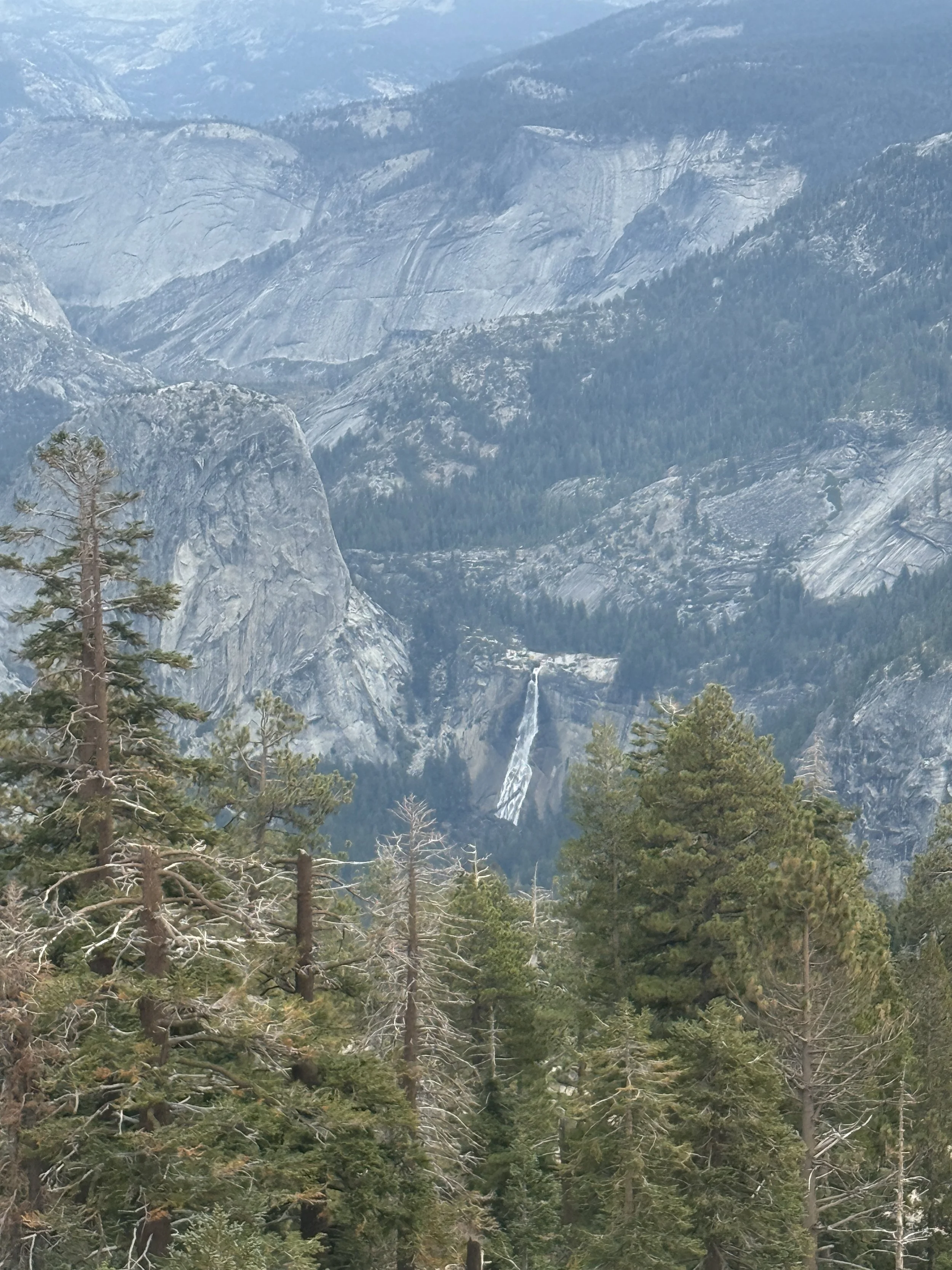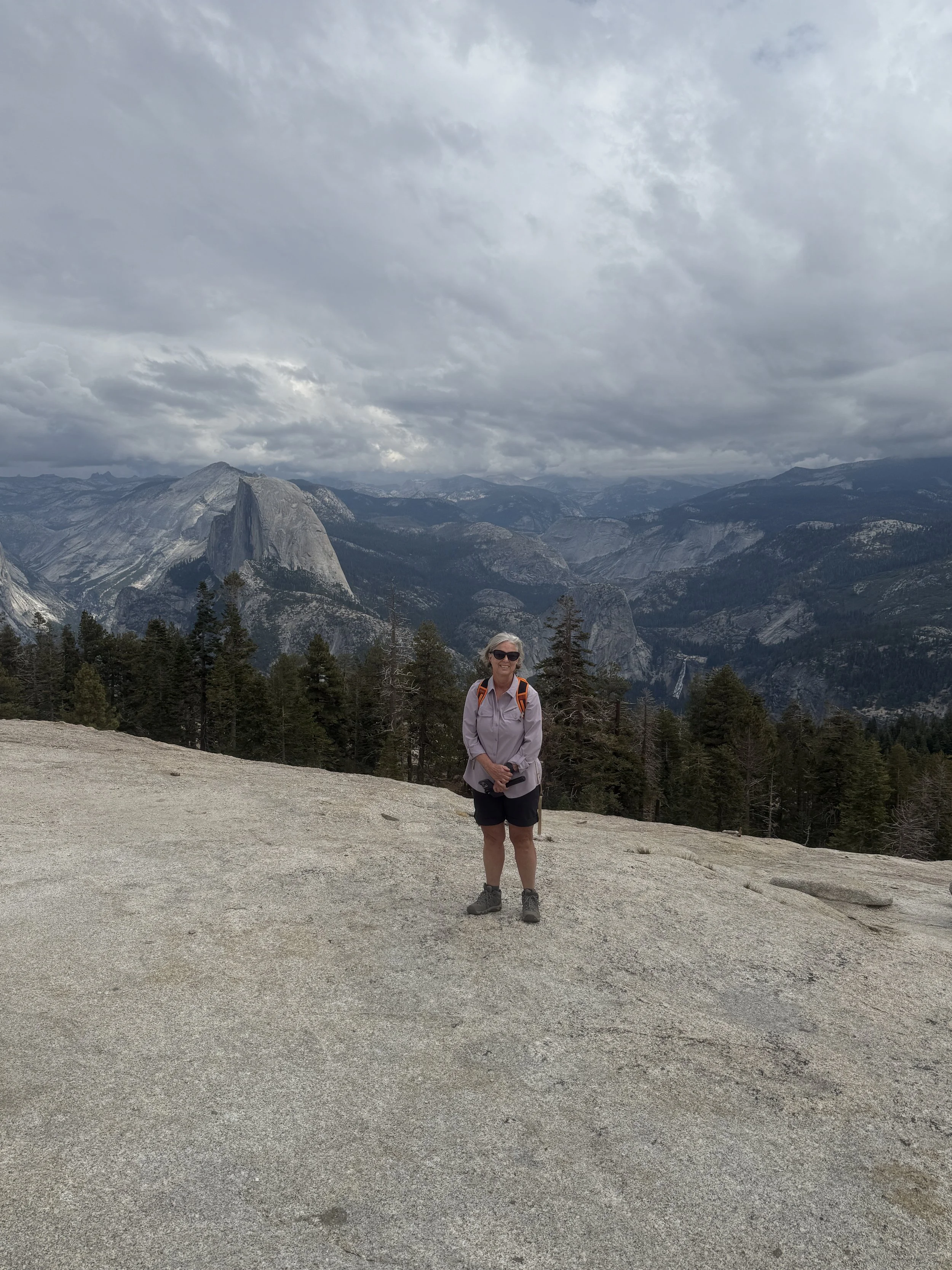 After the hike, we drove the rest of the way to Glacier Point where we ate a picnic lunch. We enjoyed more views and watched as a storm rolled in. Very cool from above 7000 feet! As we made our way back down into Yosemite Valley, the rain continued most of the afternoon. The weather was perfect every day of our trip except this one afternoon. We were glad we got our hike done in the morning!
