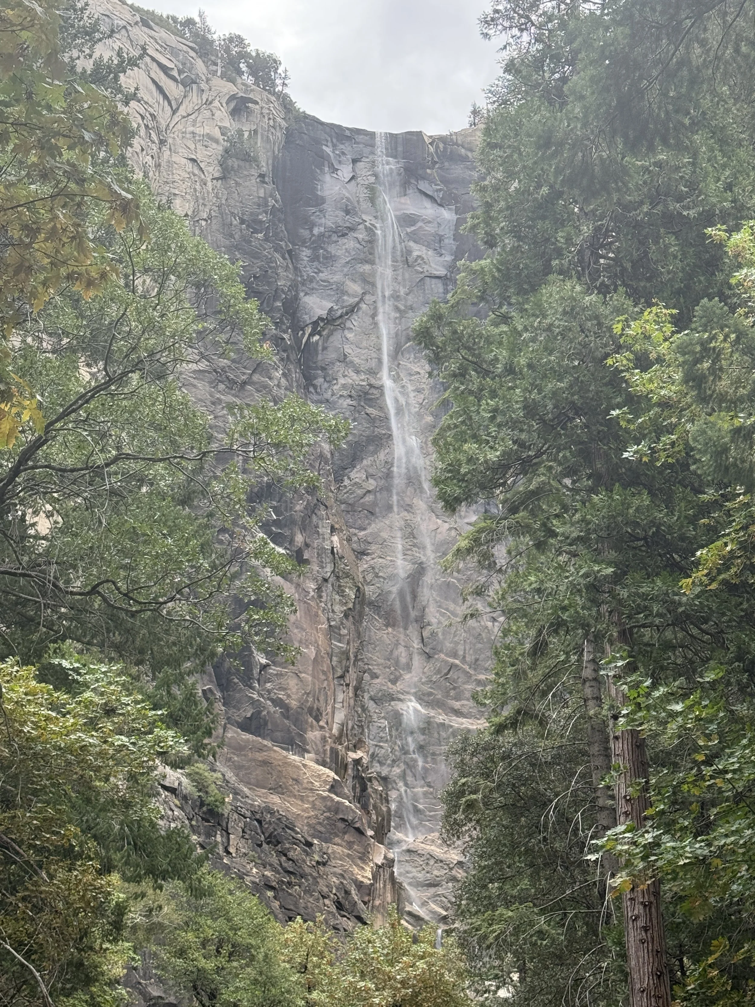 Bridalveil Fall is a easily viewed from the valley and aptly named. The water waves in the wind making it look like a blowing bridal veil. Watch the video clip below.